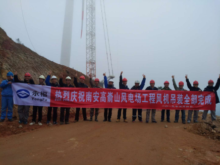 At 9:42 a.m. on January 4, 2019, the runner of the last wind turbine of Gaoyushan wind farm project located in Nan'an, Fujian province, the first EPC project undertaken by Fujian Yongfu Power Engineering Co.,Ltd (Yongfu), was successfully connected with the nacelle. A total of 24 wind turbines standing on the top ground of the Mountain Gaoyu marks the completion of the erection of all the wind turbines of this project, which has paved the way for subsequent grid interconnection and power generation.